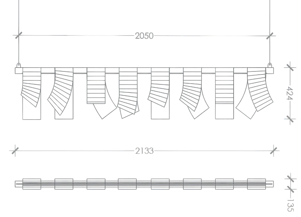 A fusion of elegance and functionality inspired by hanging fabrics. This unique luminaire, shaped with Ori's signature folded metal style, brings a touch of artistry to your space.